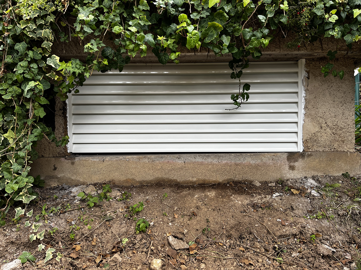Réalisation de ventelle aluminium en remplacement de barreau et grillage pour cette aération de garage. Conception et réalisation dans notre atelier sur mesure et pose sur site.