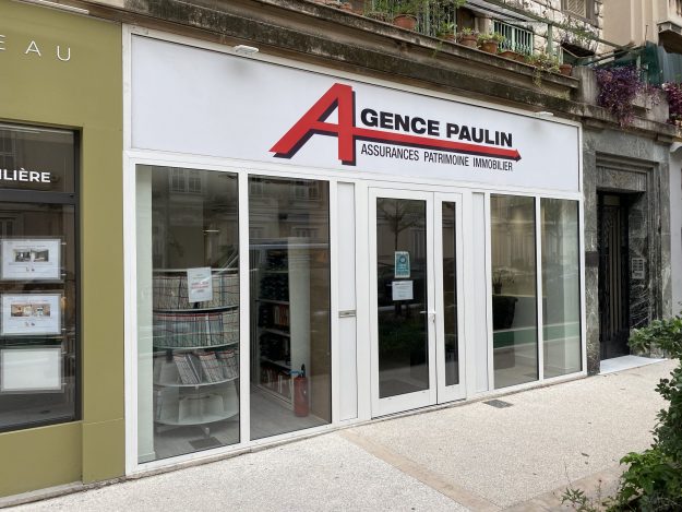 Voici une de nos réalisations, le remplacement de la vitrine de ce commerce pour gagner de l’espace à l’intérieur. Et moderniser la façade de cette agence d’assurance.