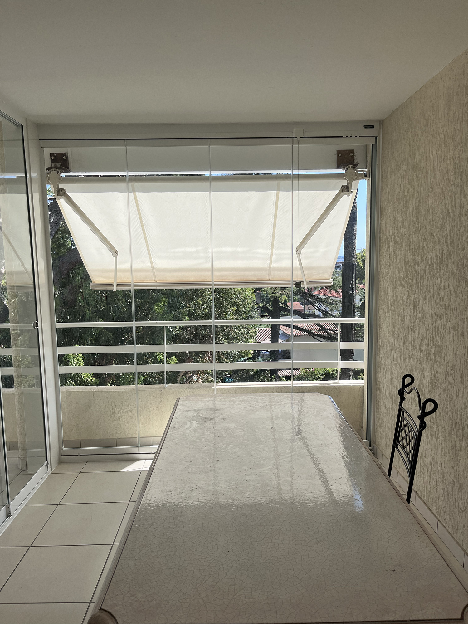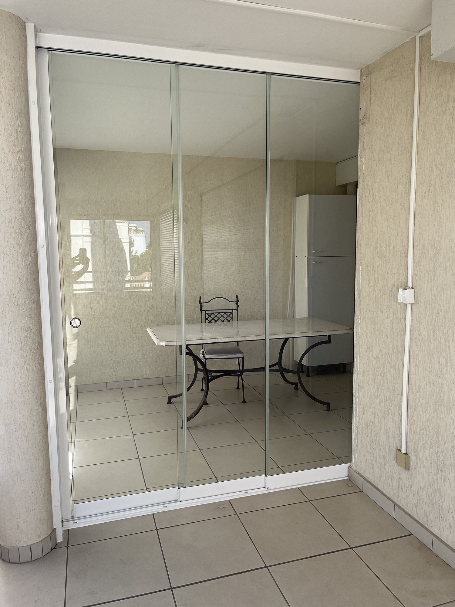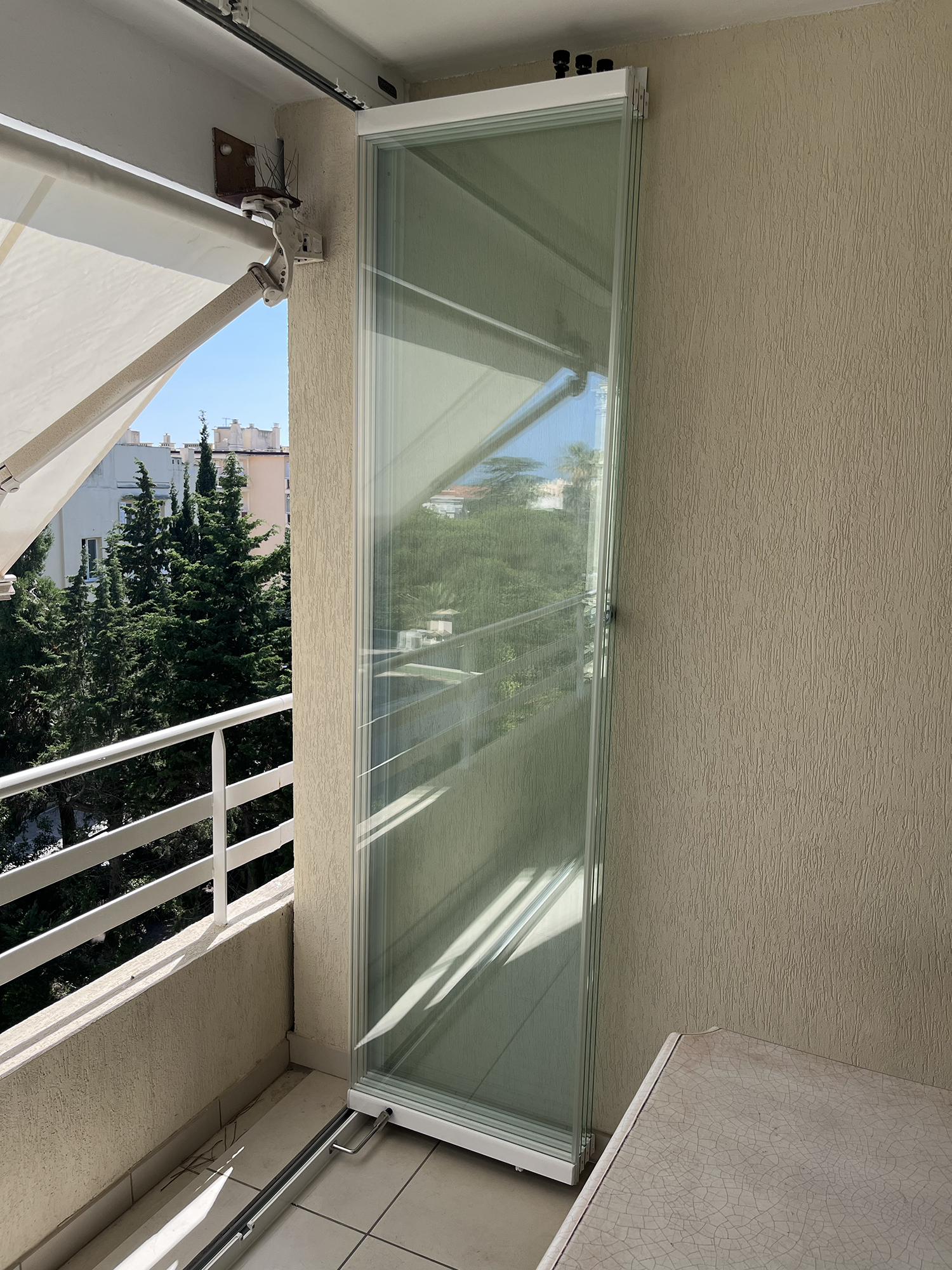 Parois coulissant panoramique en verre trempé avec rail PMR et fermeture parois de verre trempé rétractable panoramique pour garder une belle vue sur la mer.