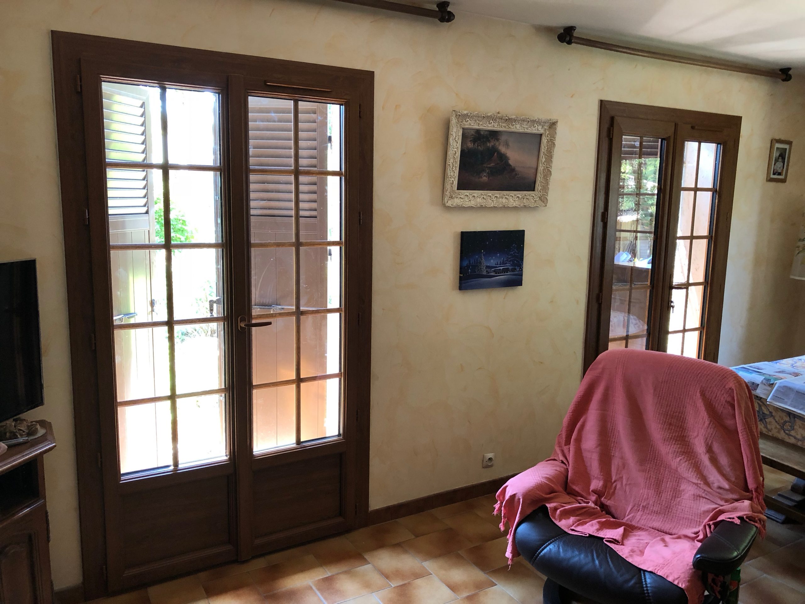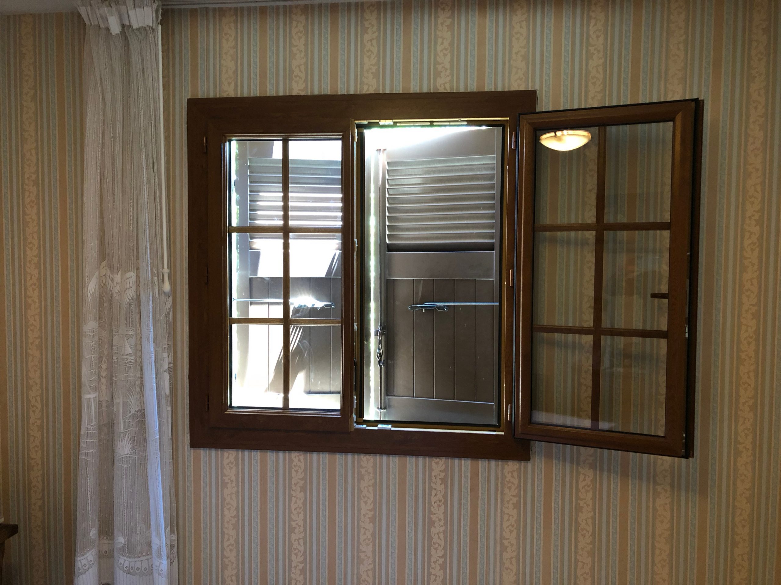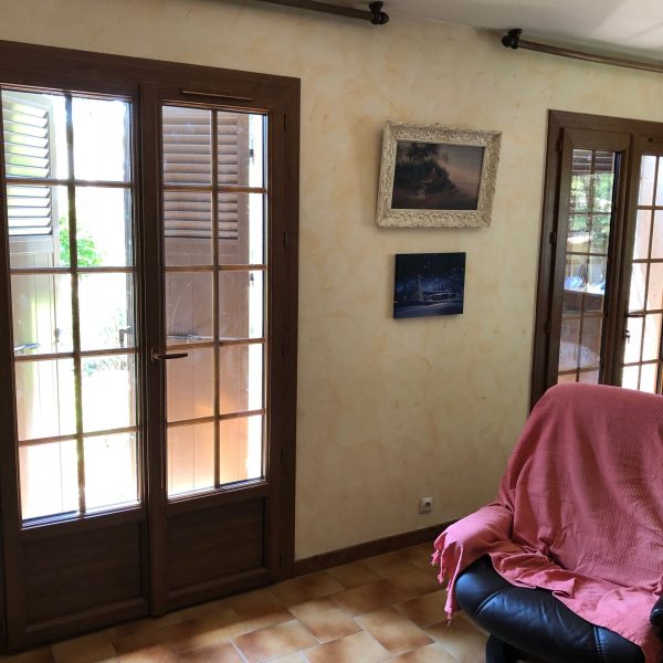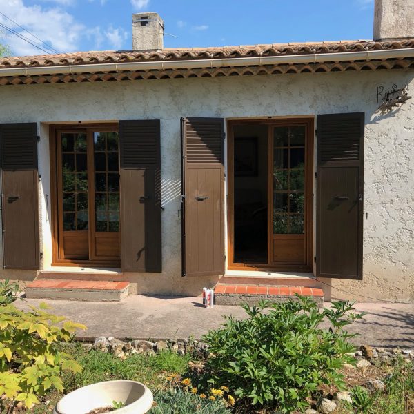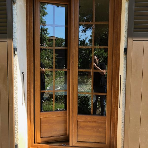 Nous vous présentons le remplacement de fenêtres traditionnelles bois par des fenêtres PVC Gamme PREFAL Equilibre Profils GELAN, double vitrage et Finition faux bois chêne doré intérieur & extérieur.