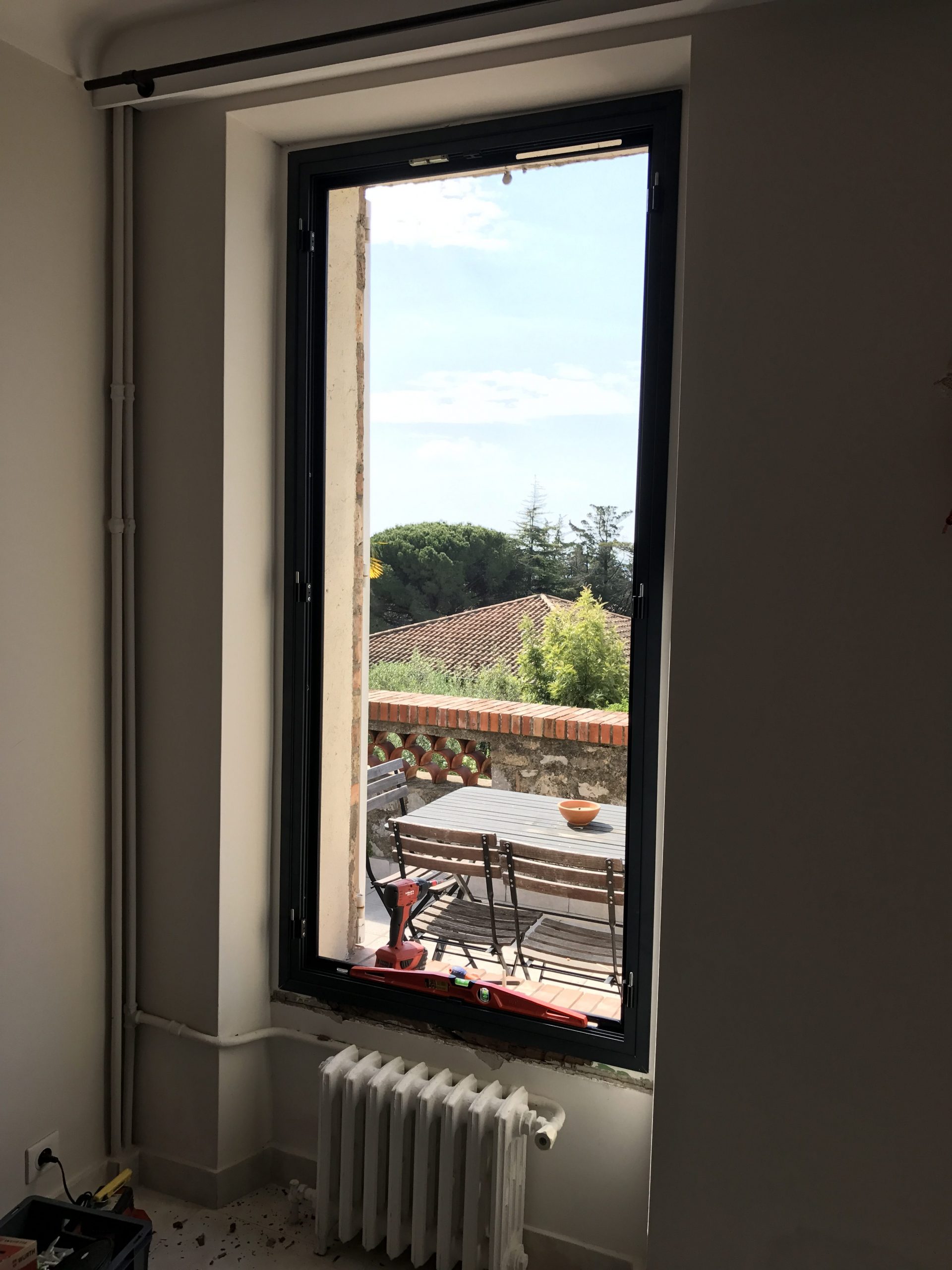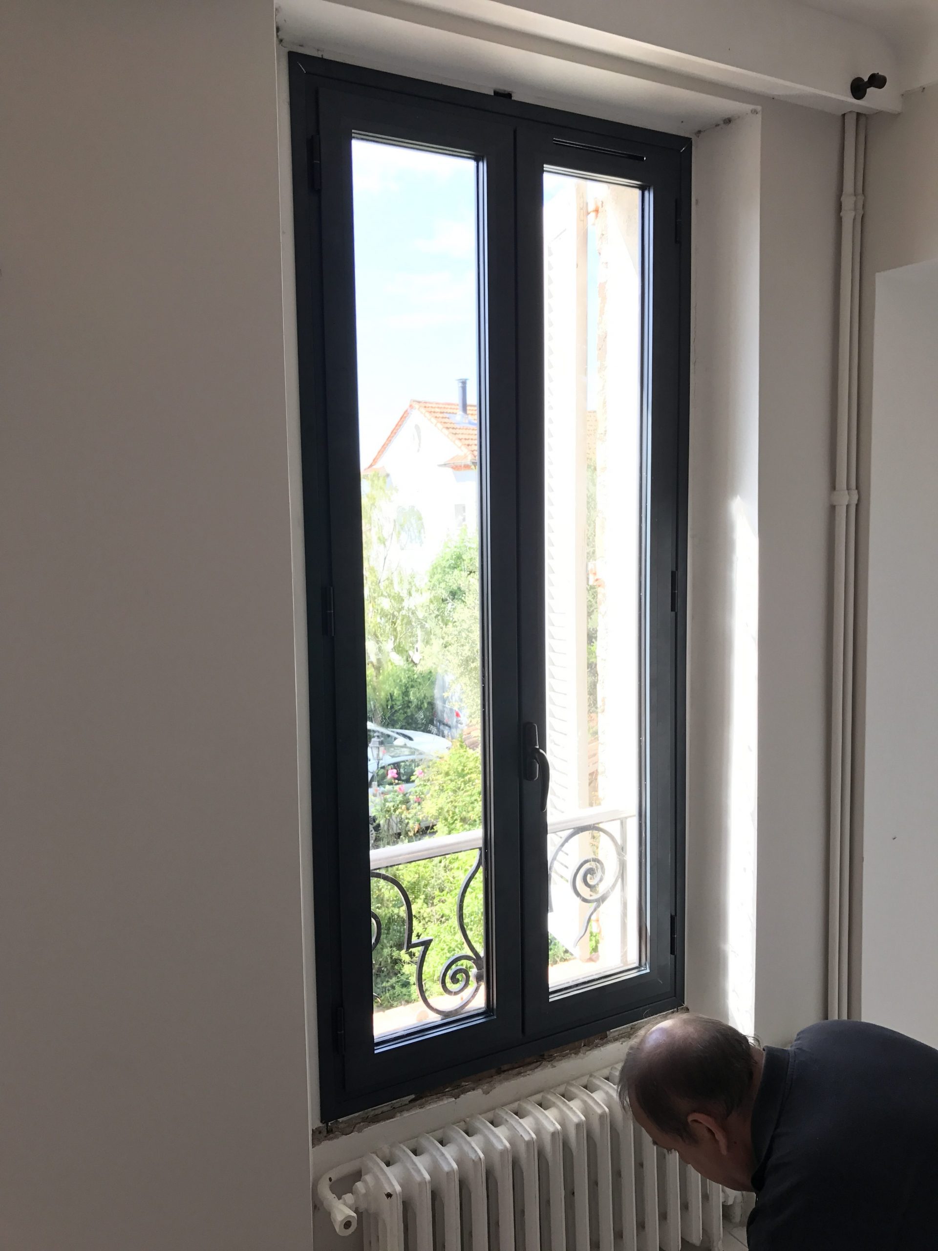 Nous vous présentons la pose en rénovation de menuiseries aluminium coloris 7016G. Double vitrage