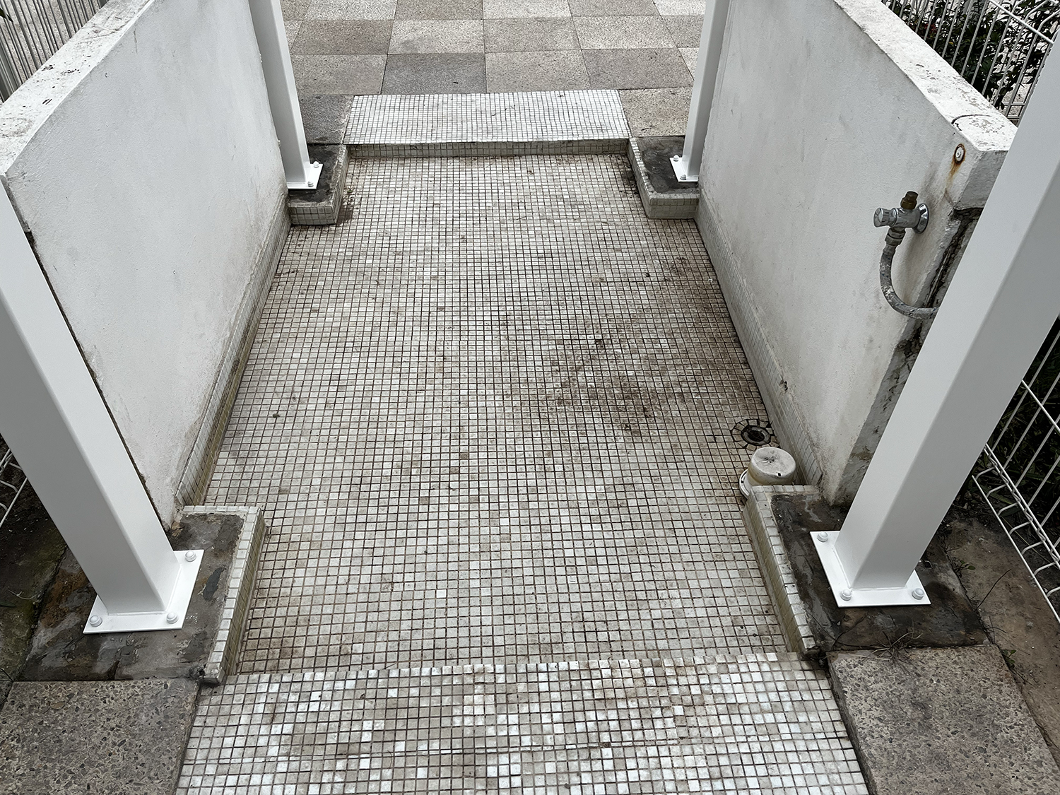 Rénovation d’une structure acier à l’entrée de cette piscine suite à de la corrosion perforante.